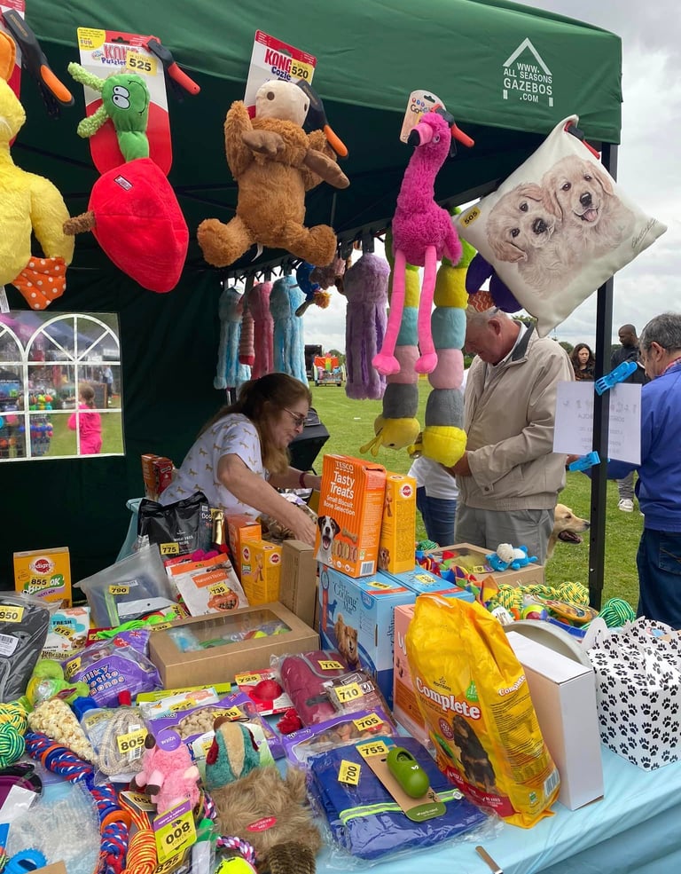 We have a gazebo that we take to events throughout the year, with our famous doggie tombola, which is always very popular. The Rescue Trust's shop attends a limited number of shows, where the goods are always very popular.