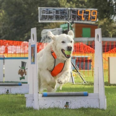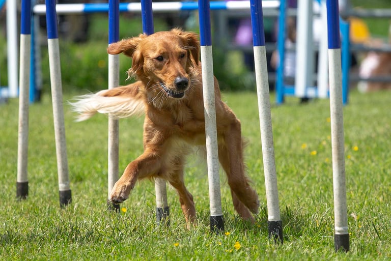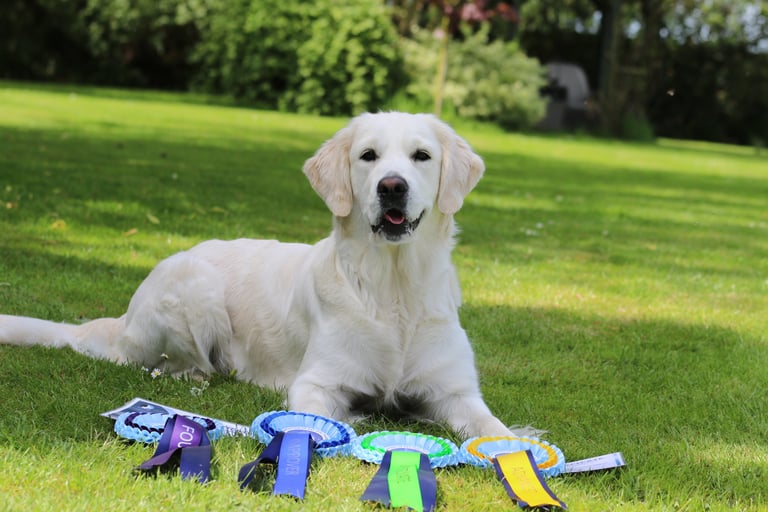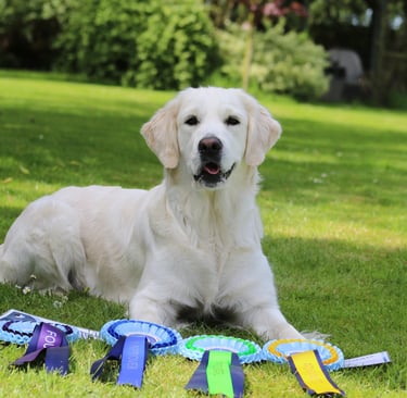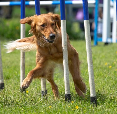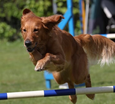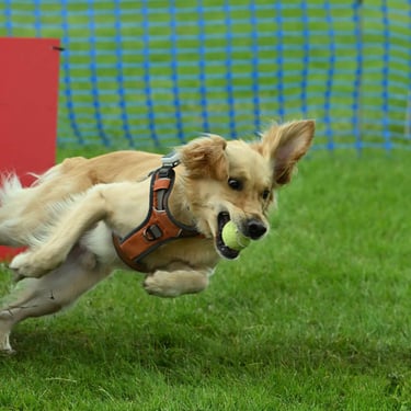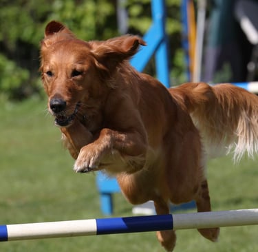 Nowadays we are very lucky to have the choice of many dog sports to choose from, and the Golden is a popular choice for many, whether it be fun activities such as Agility, Scentwork, Hoopers, Obedience, Rally, Mantrailing, Working Trials, Flyball, Heelwork to Music. Your Golden will love taking part in any of these sports and your bond will much stronger.