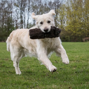 Golden Retrievers were bred to retrieve game. They love to carry things, toys, shoes, cushions, in fact anything they can find and have.